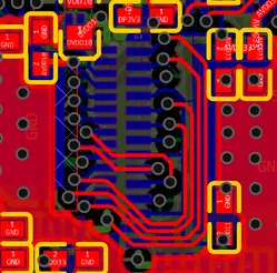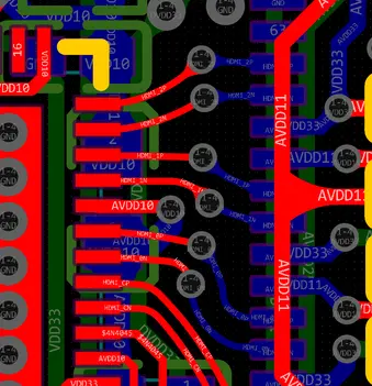 Esto no fue "simplemente mover las piezas". Con DP y VGA las restricciones de enrutamiento son estrictas. Mantener las señales de alta velocidad limpias, especialmente los pares diferenciales, es no negociable. Poner ambos chips hacia fuera complicó el enrutamiento y tuvimos que trabajar con cuidado para no degradar la integridad de señal.