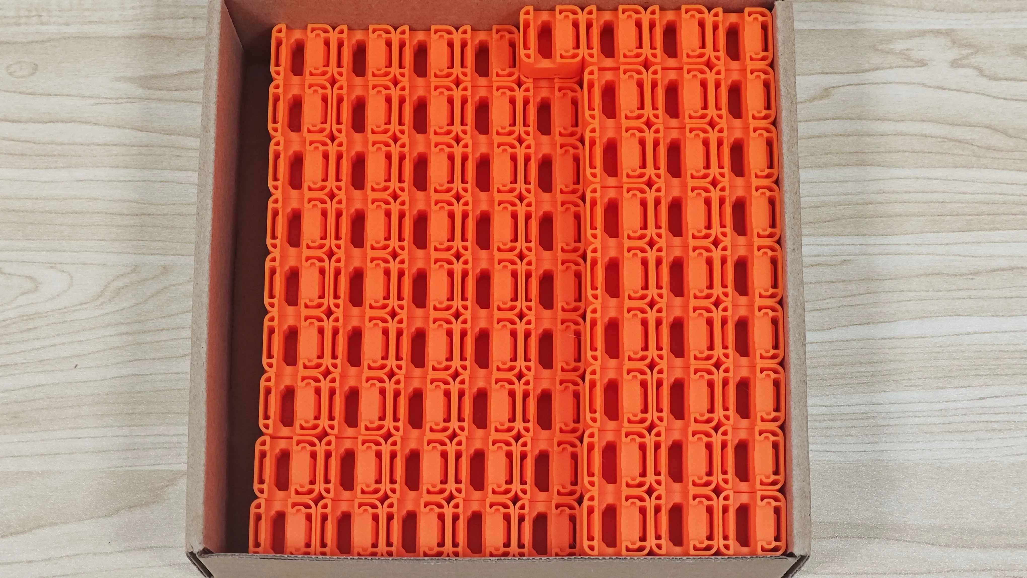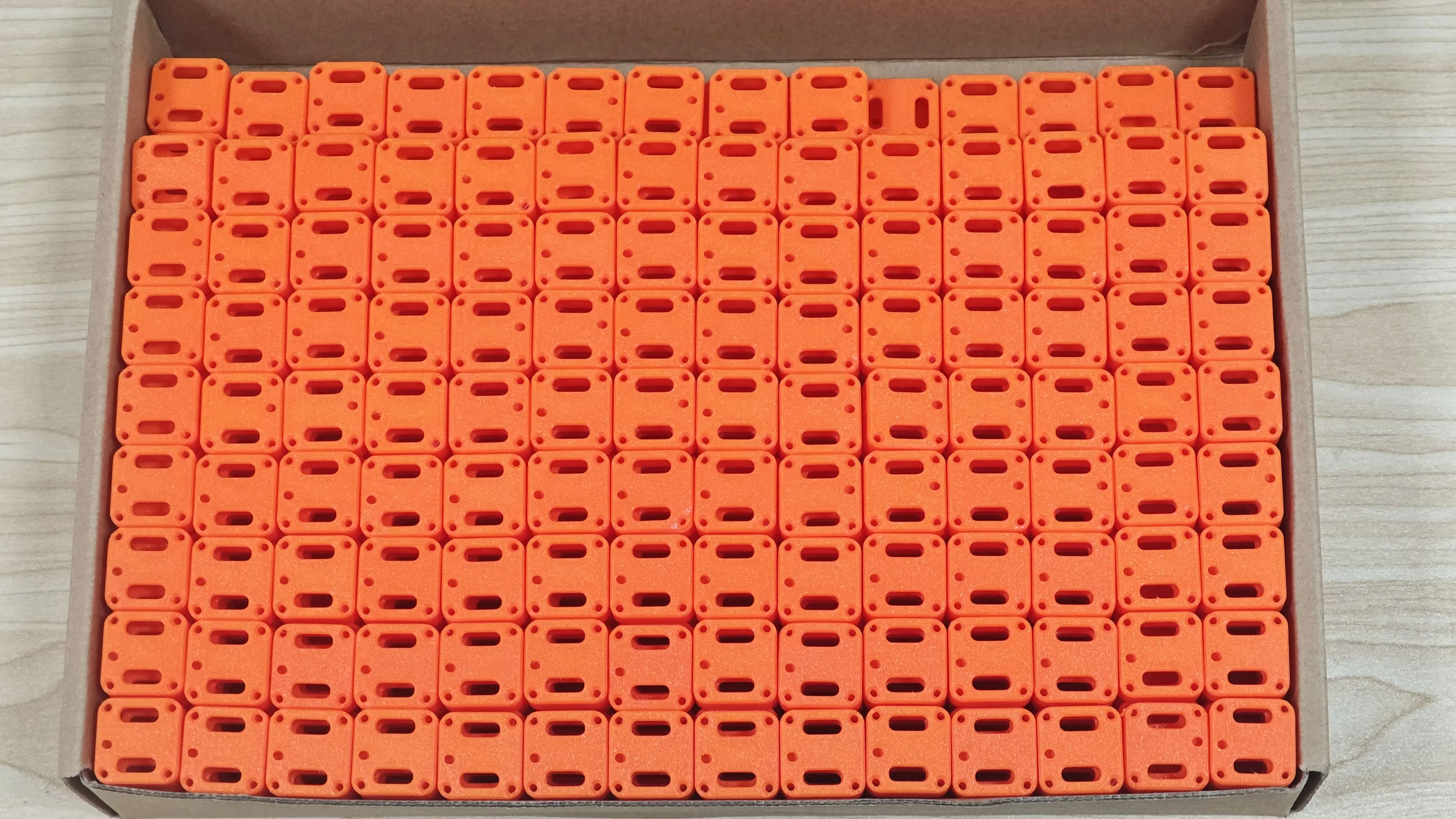Orange connector caps are in batch production as we tune process consistency to improve yield and assembly stability.
