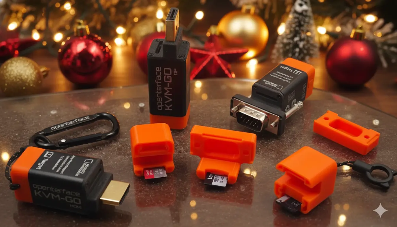 Holiday-themed image generated with Nano Banana, based on real photos of our KVM-GO products.