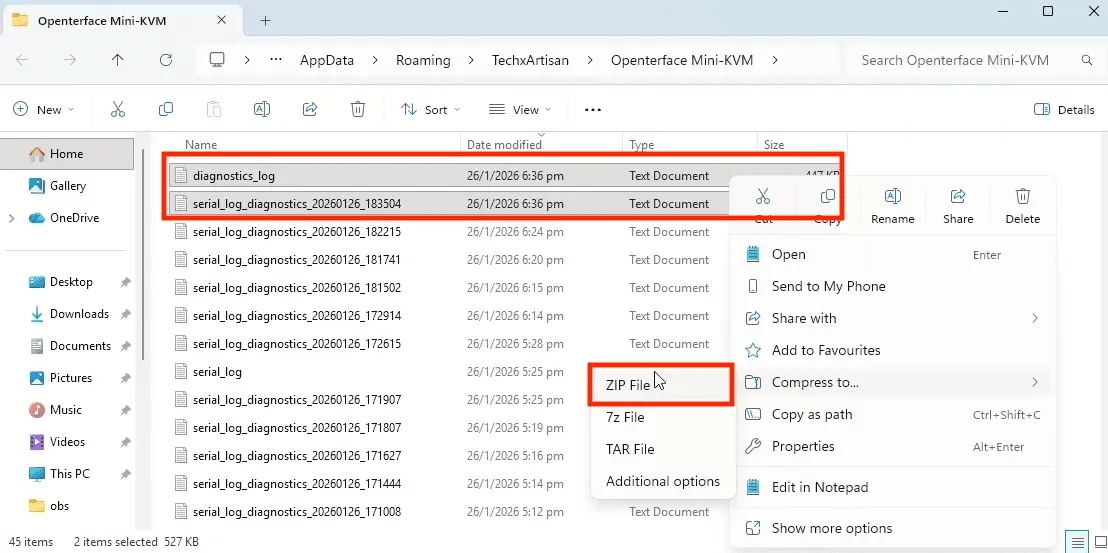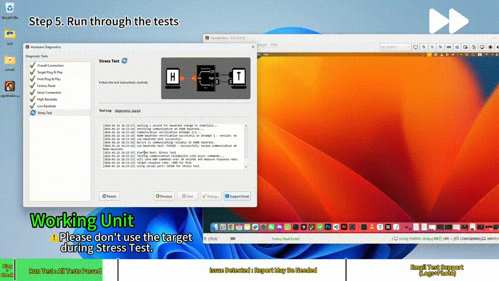 This guide explains how to run the Hardware Diagnostics self-check in the Windows version of the Openterface app, and how to send the diagnostic report to support if an issue is detected.