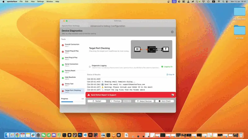 This guide provides step-by-step instructions for running diagnostic self-checks on the Openterface Mini-KVM device.